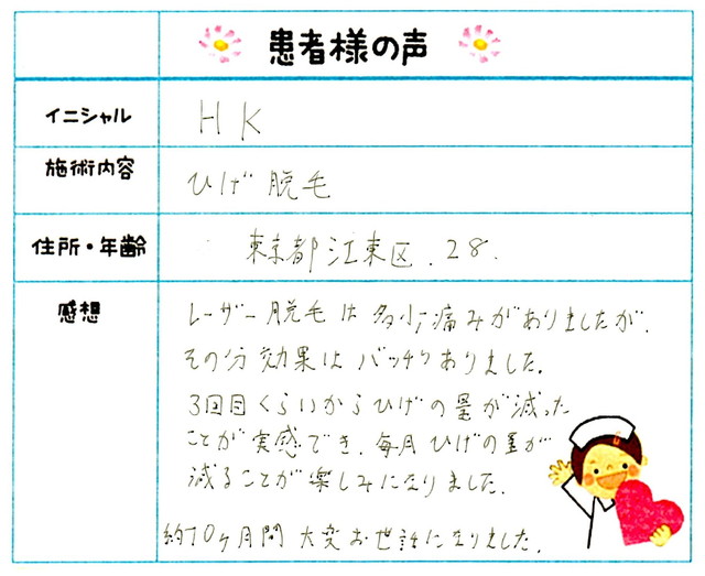 147. ヒゲ脱毛 東京都 江東区 28才男性 H.K様