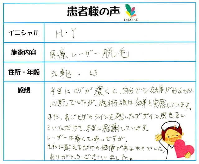 220. ヒゲ脱毛 東京都 江東区 23才男性 H.Y様