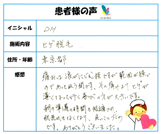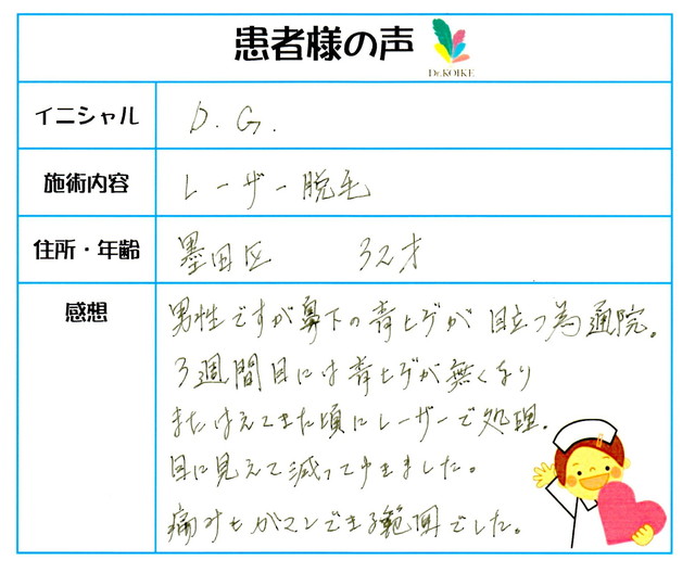 295. ヒゲ脱毛 東京都 墨田区 32才男性 D.G様