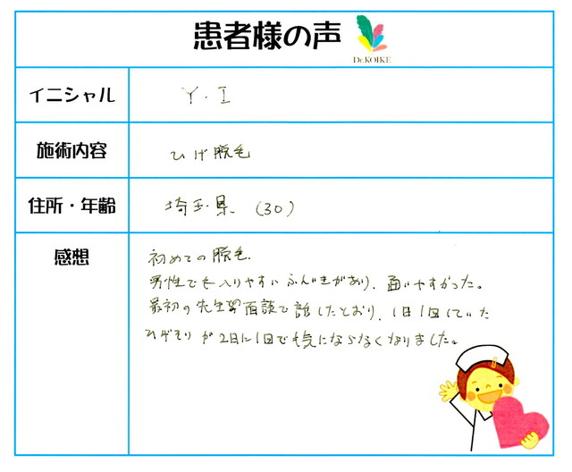 296. ヒゲ脱毛 埼玉県 30才男性 Y.I様