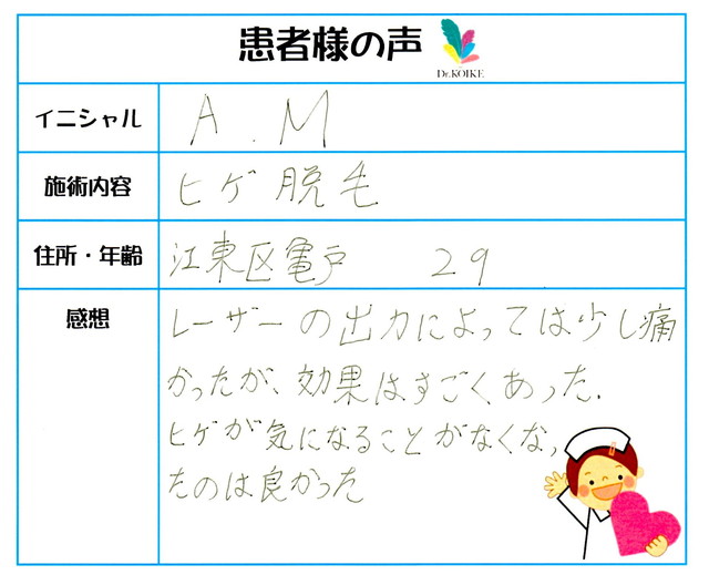 326. ヒゲ脱毛 東京都 江東区 29才男性 A.M様