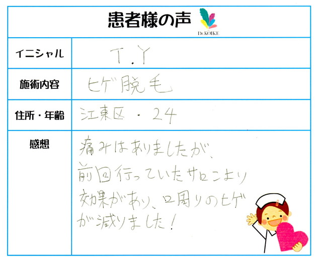 334. ヒゲ脱毛 東京都 江東区 24才男性 T.Y様