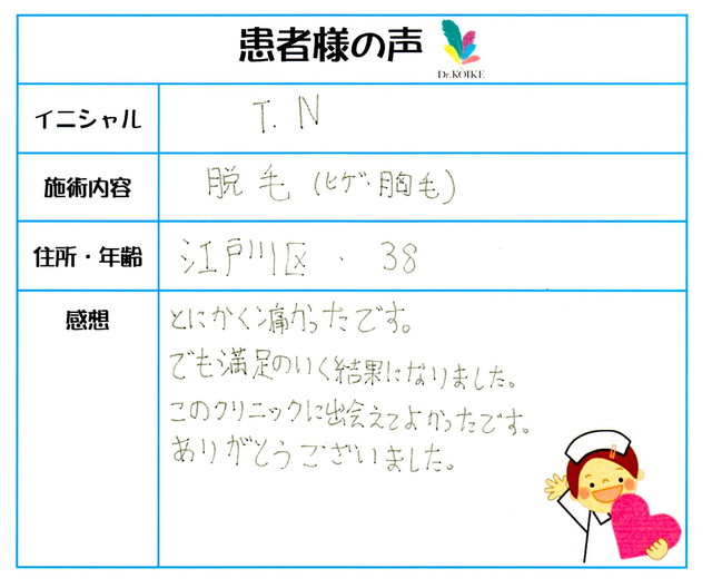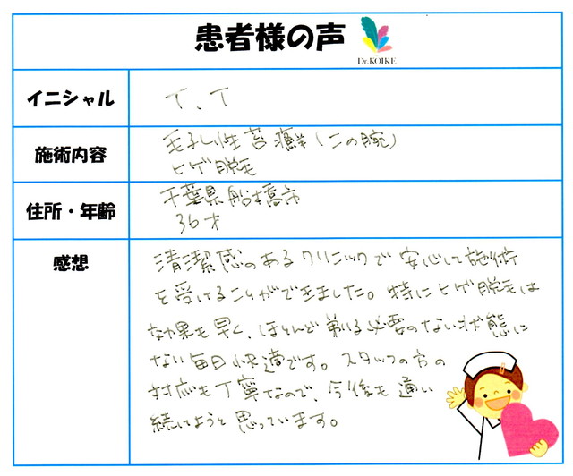 340. ヒゲ脱毛・脱毛(ボディ) 東京都 江戸川区 38才男性 T.N様