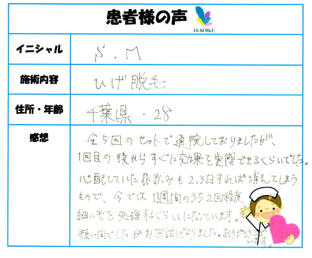 367. ヒゲ脱毛 千葉県 28才男性 S.M様