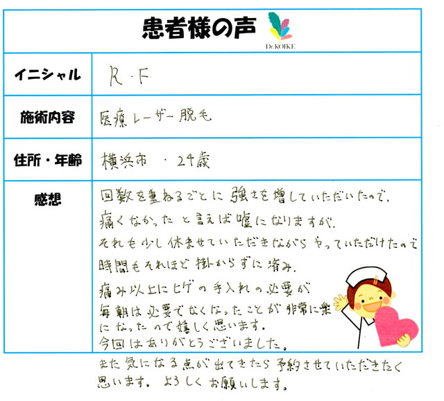 392. ヒゲ脱毛 横浜市 24才男性 R.F様