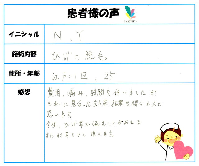 426. ヒゲ脱毛 江戸川区 25才 N.Y様