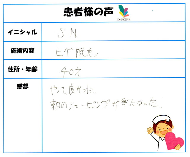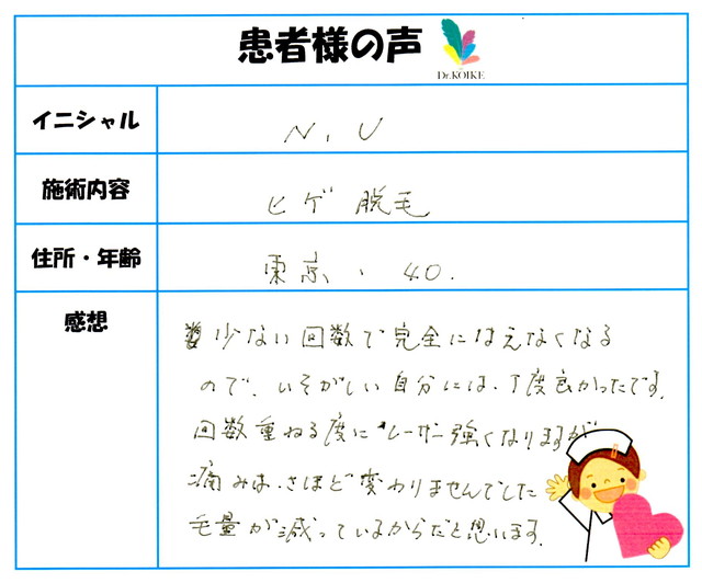 458. ヒゲ脱毛 東京都 40才 N.U様