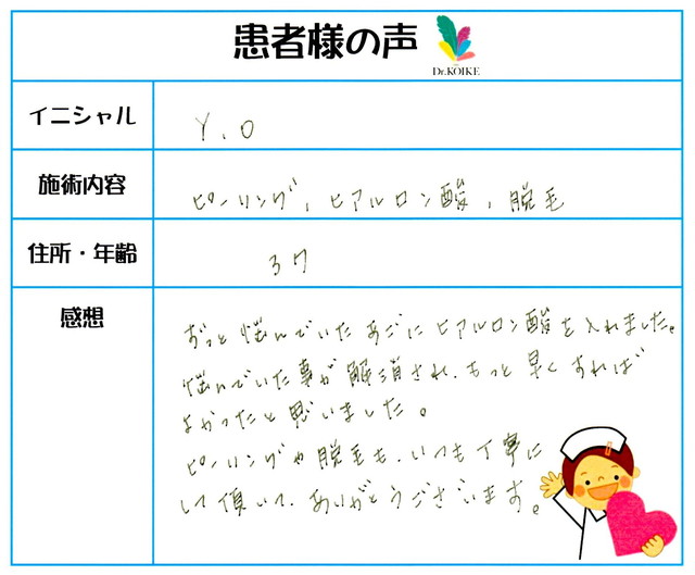 211. アゴの形・肌質改善・脱毛(ボディ) 37才 Y.O様