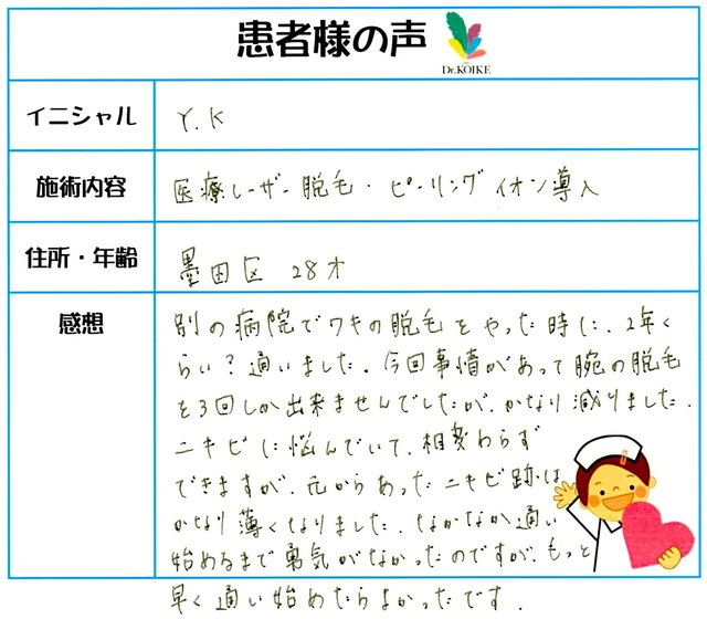 232. ニキビ・肌質改善・脱毛(ボディ) 墨田区 28才 Y.K様