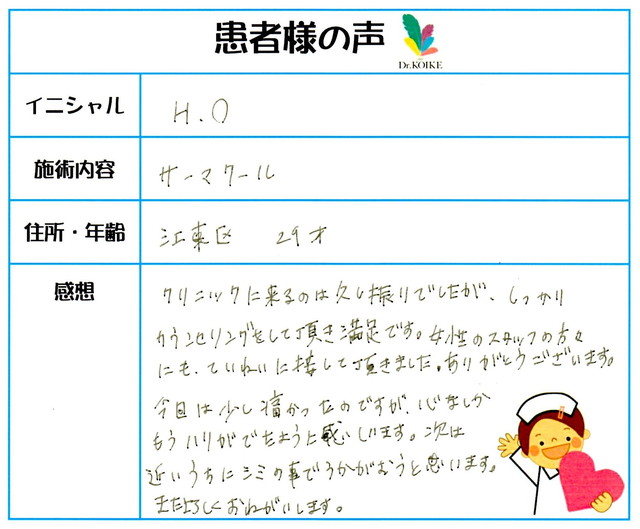 245. シワ・たるみ・肌質改善 東京都 江東区 29才女性 H.O様