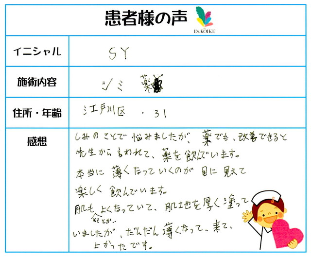 182. シミ・肝斑 東京都 江戸川区 31才女性 S.Y様