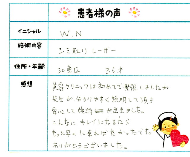 184. シミ・肝斑 東京都 江東区 36才女性 W.N様