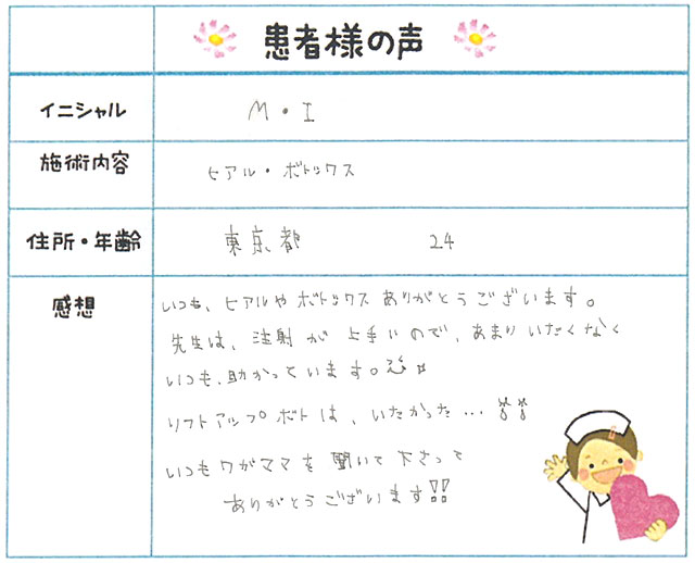 32. シワ・たるみ・唇(くちびる)・鼻を高くする 東京都 24才女性 M.I様