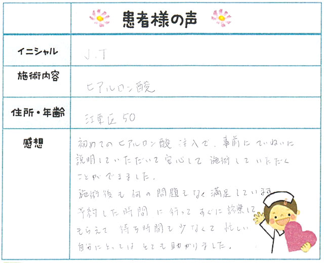 45. シワ・たるみ 東京都 江東区 50才女性 J.T様
